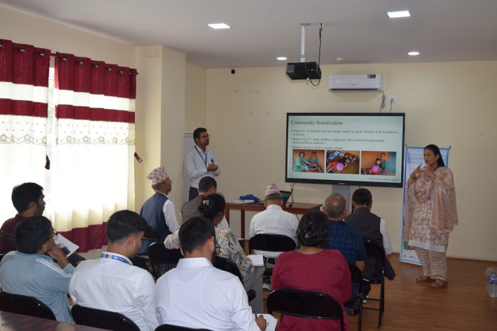 | Mr Omkar Basnet did a presentation on the findings related to children who screened positive for developmental delays and disabilities. Mrs. Rejina Gurung explained why some children are screened as global disability instead of some form of mental or physical disability. |